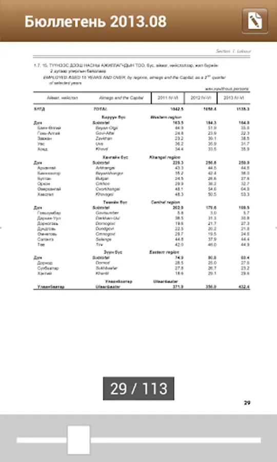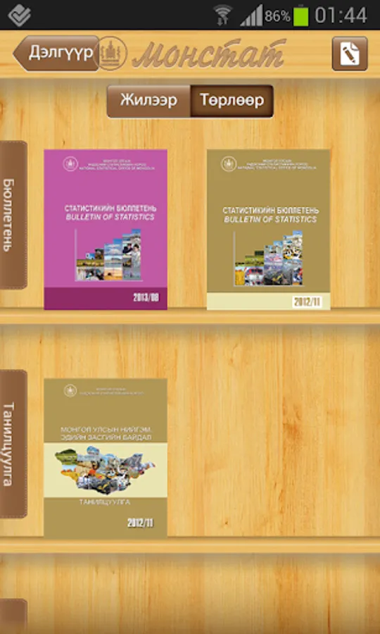 National Statistical Office of Mongolia officially makes all digital publishing available on Android brought you by this app; including magazines, bulletins, reviews and yearbooks.