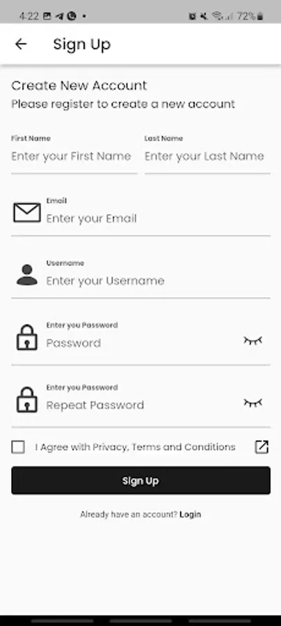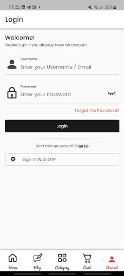 4- Log in with either the phone number or the email and the password that you registered in creating the account