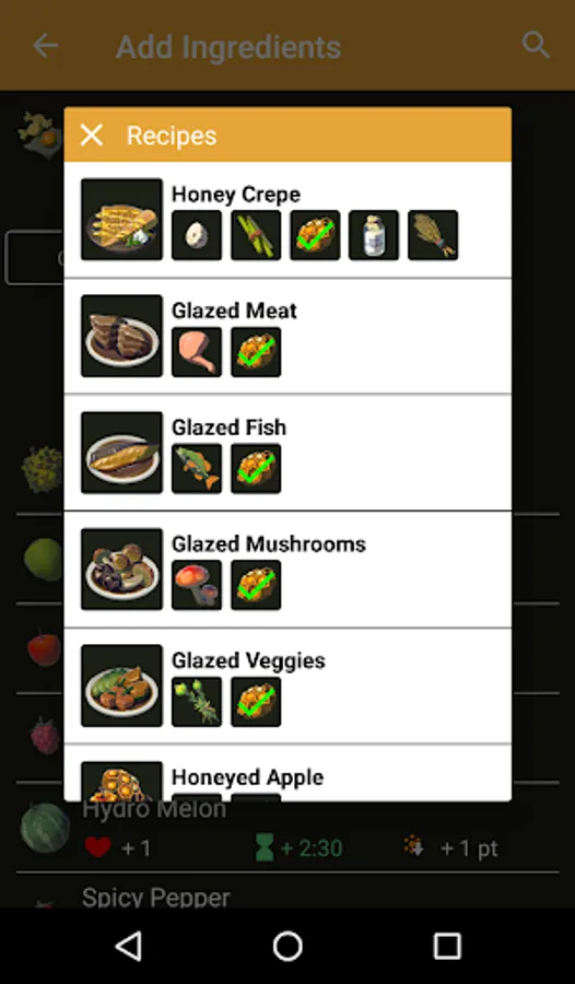 - Automatically filters out ingredients that would remove the effect or make "dubious food"!