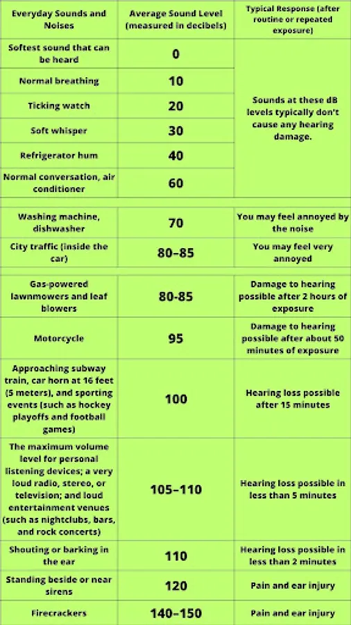 The American Academy of Audiology reports that noise levels can range from 20 dB to 120 dB, with 60 dB being about the volume of a normal conversation.