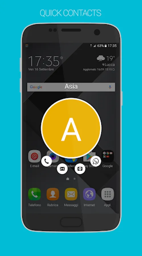 QuickTools allows you to add up to six contacts to which you can send an SMS, E-mail, a Whatsapp message and dial a call!