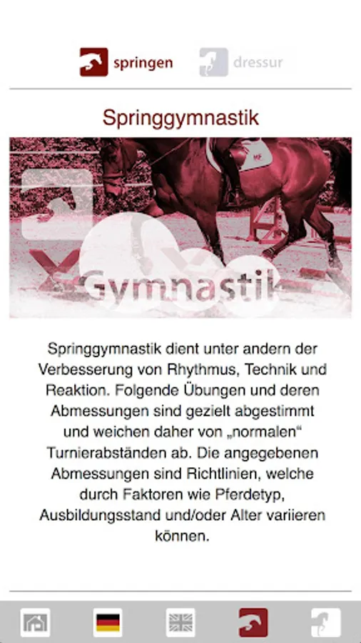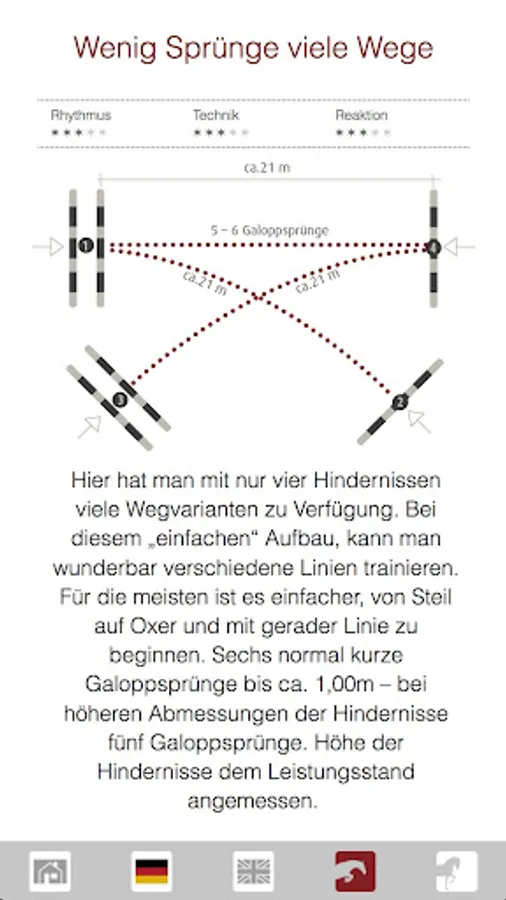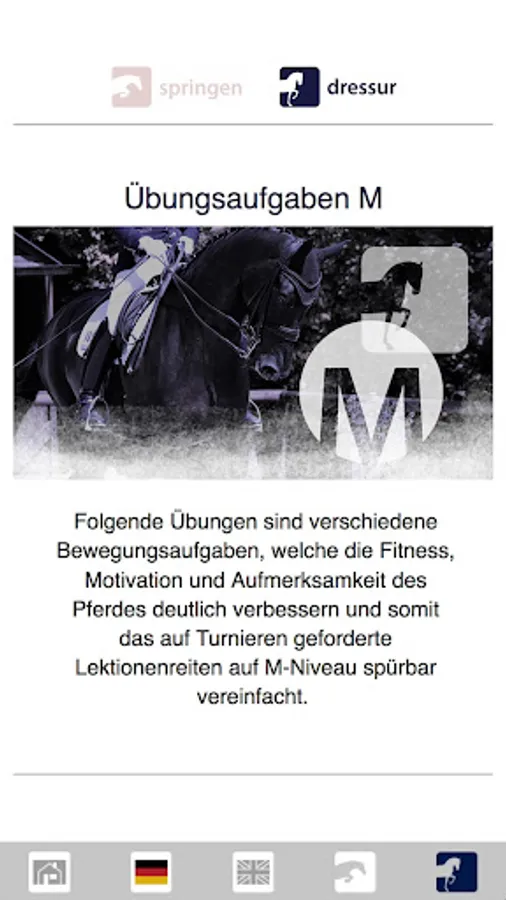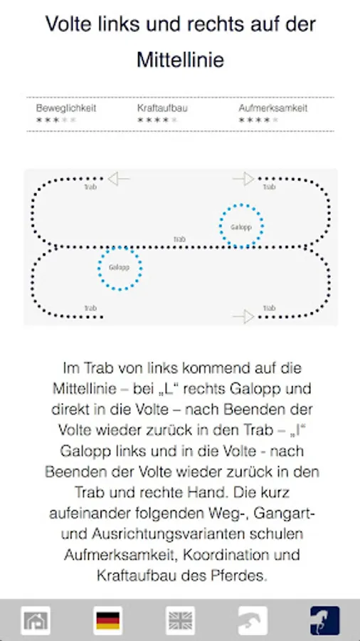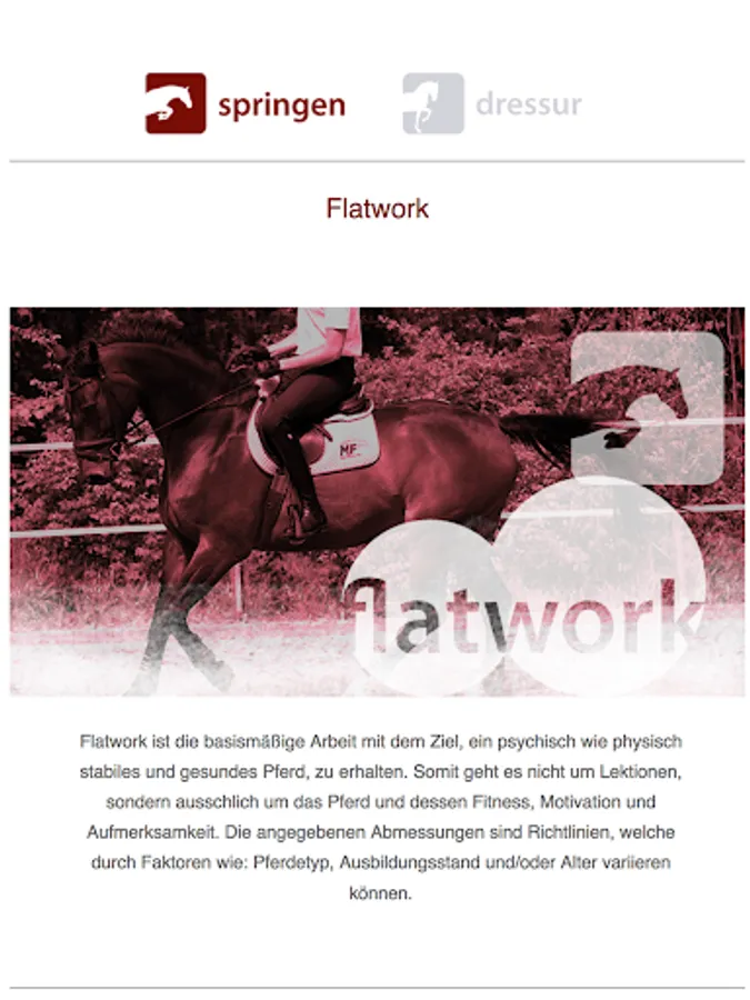 Finally there is an app for horse training of all performance and age groups. It contains more than 70 graphically supported training examples for dressage and jumping horses as well as an extensive tournament checklist. Regular free updates bring variety to your future training. The app works regardless of local Internet access, as it works offline and without further registrations.