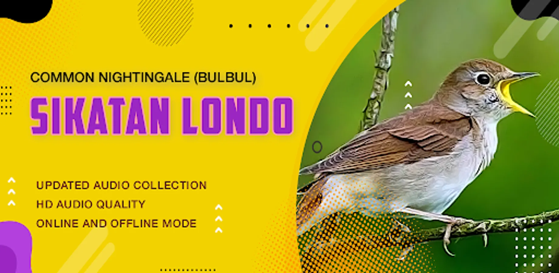 Londo's Flycatcher Bird Chirping is the application of choice for bird and racing bird lovers such as magpie, kacer, green cucak, and cendet. Enjoy the beautiful and powerful songs of this little bird known as the Common Nightingale, which you can listen to and play offline without using up your data quota.