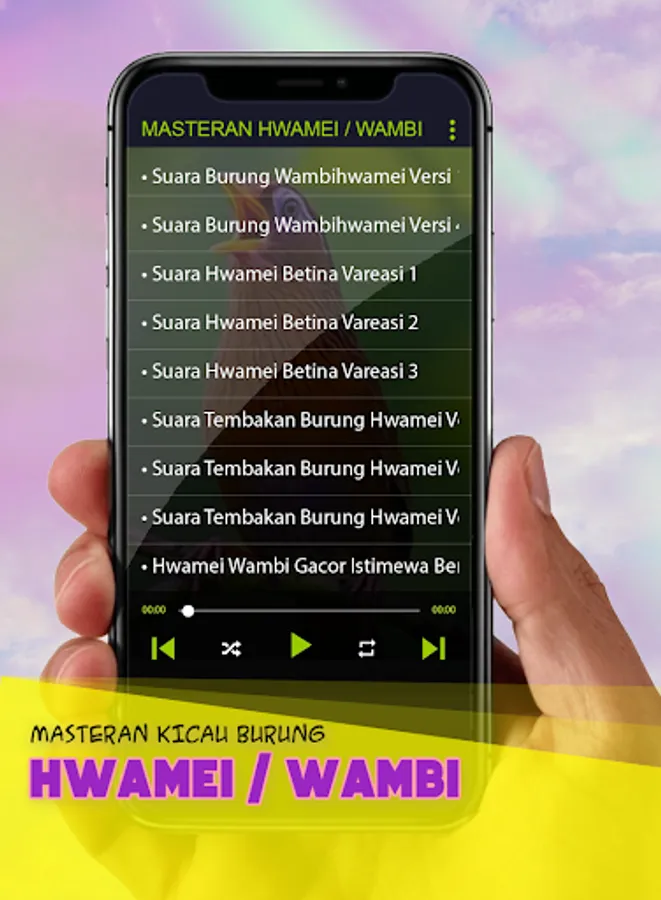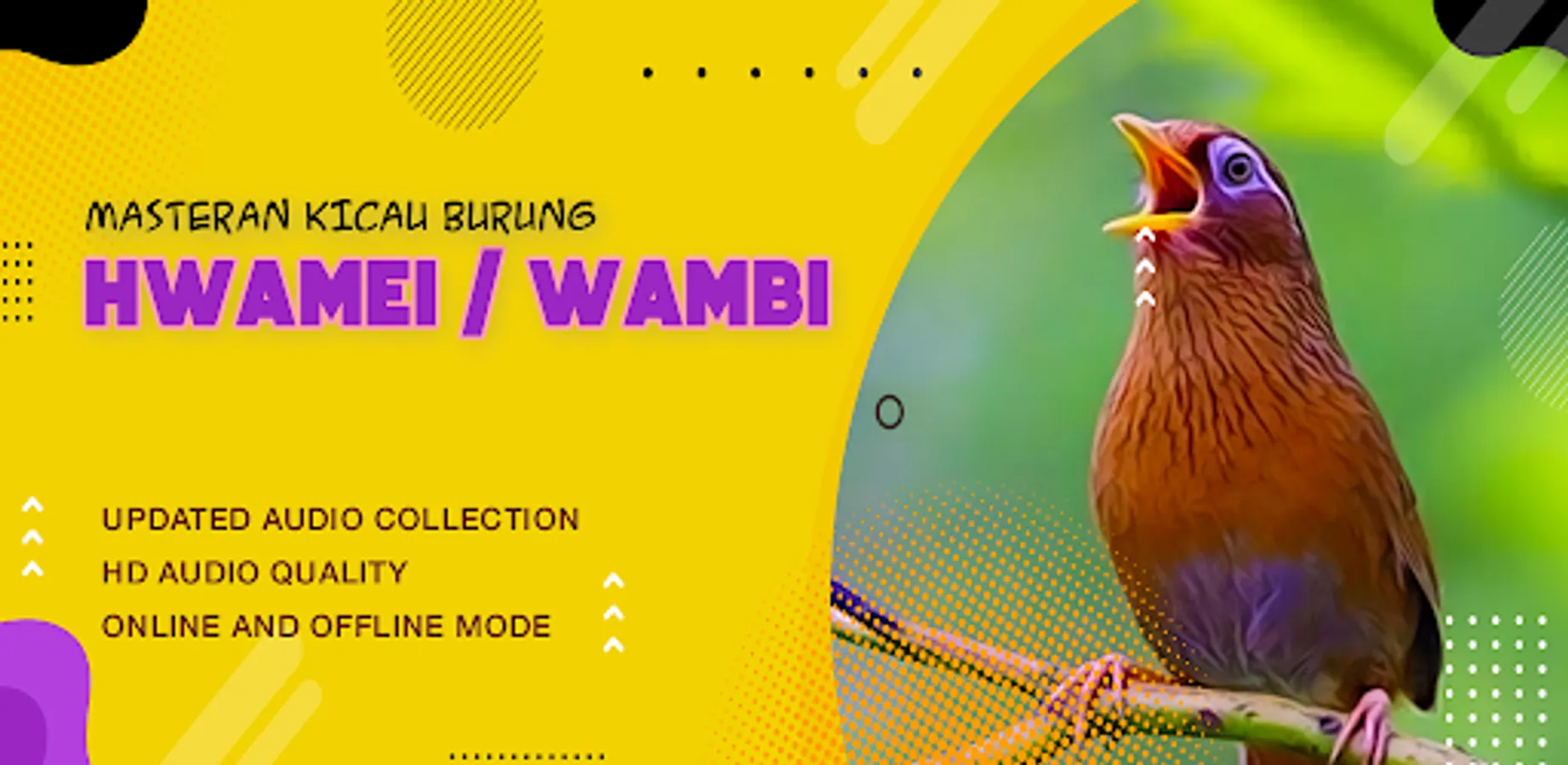 The sound application of the quality hwamei / wambi master bird is very suitable for baiting or mastering birds. The hwamei / wambi masteran sound application can be run offline and online with a wider collection of hwamei / wambi bird audio. Suitable for those of you who have birds and want to make your hwamei / wambi birds more gacor and have a variety of varied song fillings.