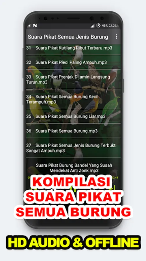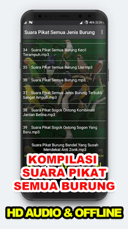With the Most Complete Bird Enticing Sounds application, you can attract birds in various places such as gardens, forests or even around your environment. This application is also useful as a therapy tool for your pet bird who is lazy to sound. All the alluring sounds in this application are very effective and proven successful in attracting various types of birds.