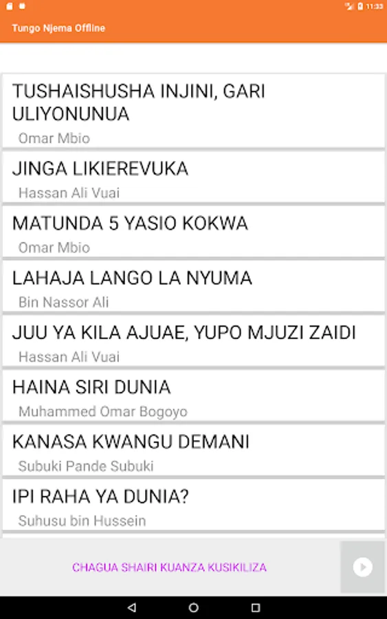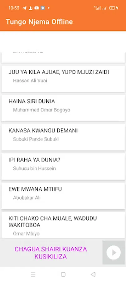 Listen to poems from Zanzibar. This is our first app for Swahili poems, support us by downloading and listening. With your support, we can make an internet-based app, that will bring you new contents weekly.