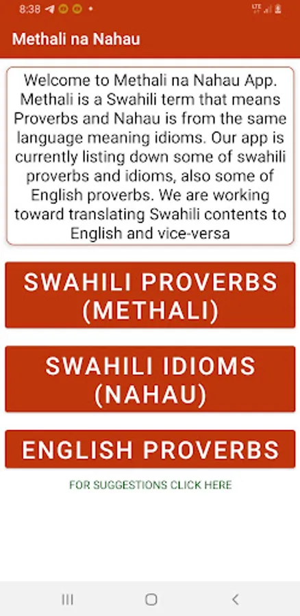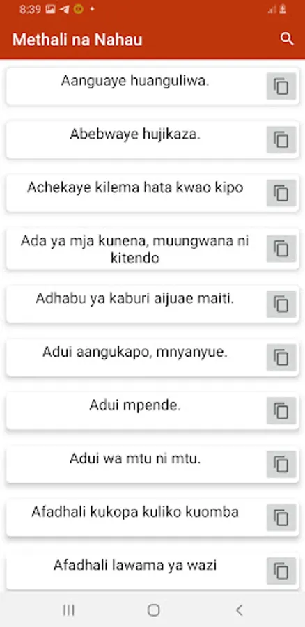 Methali and Nahau is a simple app that brings you Swahili methali along with Nahau. You can copy them and share them with your friends and colleagues very easily.