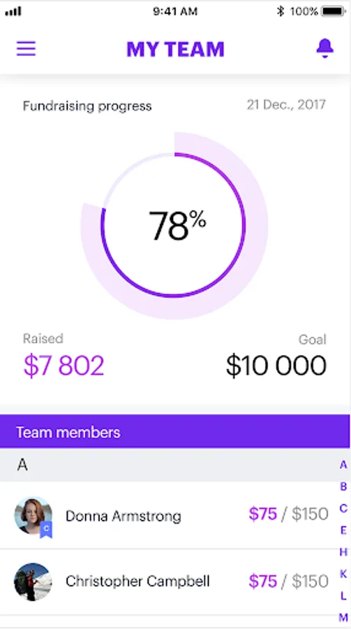 The March for Babies App instantly communicates with your March for Babies account. Changes you make in the App will be reflected on your March for Babies fundraising page and vice versa.