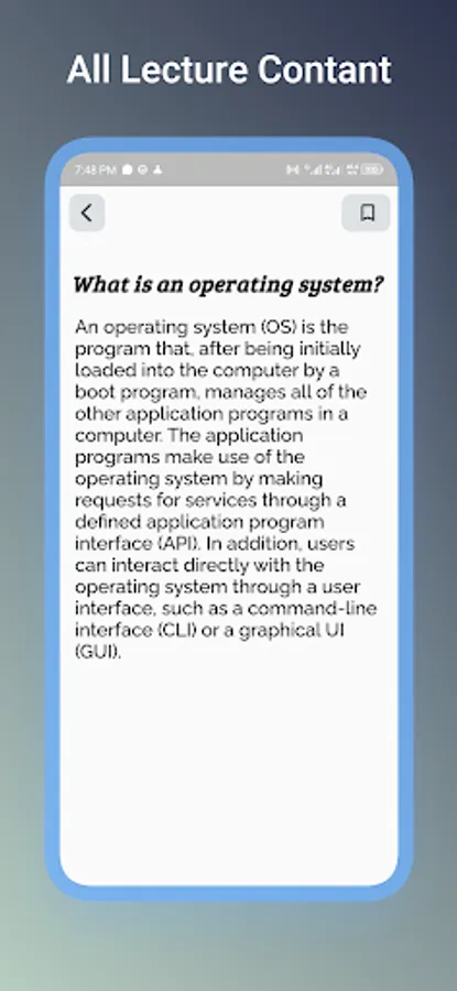 Anyone who wishes to learn more about operating systems, an important topic in the field of computer science or engineering, will find the operating system app to be helpful.