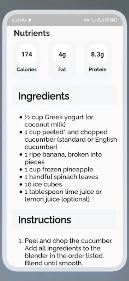 - There is a detail of nutrition which tells about the calories proteins and carb in smoothie.