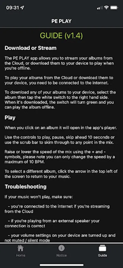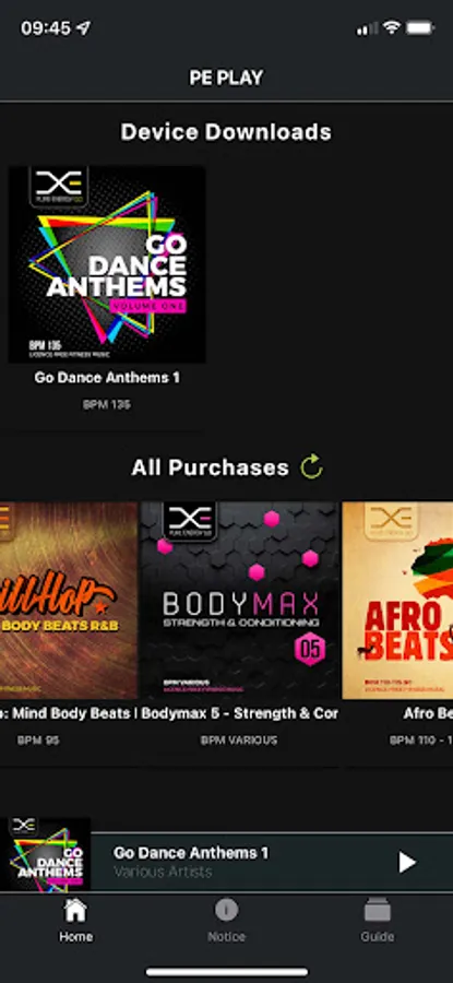 The PE Play App automatically syncs any music you buy from the Pure Energy GO music store. This enables you to organise your purchases, control the speed of your music and play directly from your device. Our App allows you to link to your sound system via Bluetooth and with the option to either stream or download files directly to your device, you won’t need to worry about Wi-Fi connectivity or using up your mobile data.