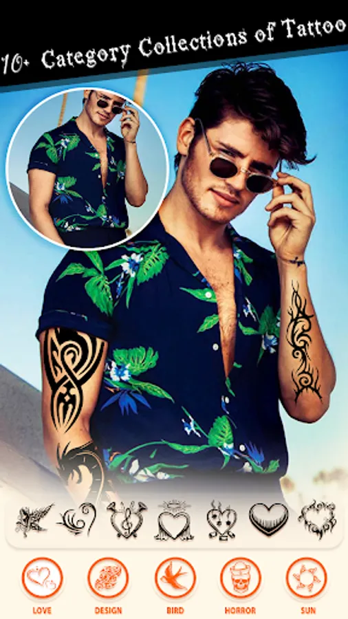 Tattoo Design Maker is awesome app which let you try new tattoo designs and decorate your photos with sticker tattoo in different categories.Tattoo Design Maker is a unique concept where you can tattoo yourself with sticker tattoo and add as many number of tattoos as you want.