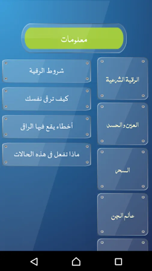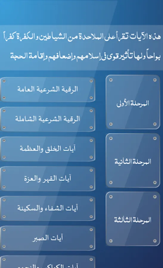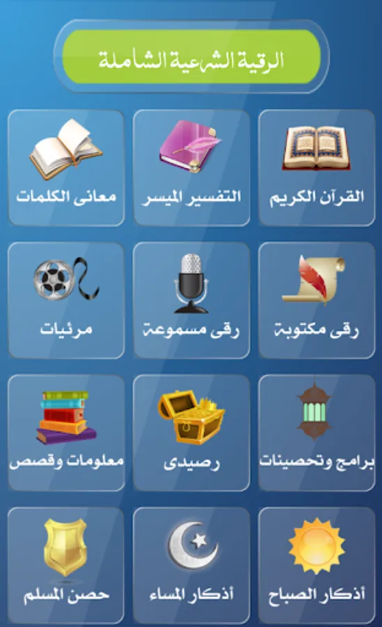 The application of the comprehensive legal rokia contains 36 written papers for various cases of envy, eye, magic and touching as well as contains educational videos and presentation of various cases and ways to decipher the magic in a correct manner also contains 20 programs of treatment of various situations in addition to the Koran and its meanings and interpretation and the morning and evening,