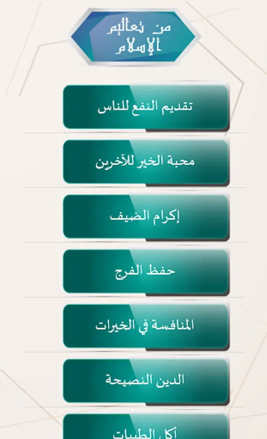 Learn about Islam and its tolerant teachings and what are the characteristics of Islamic law and what Islam has presented to the world and the look of Islam on many important issues and many important articles within the application