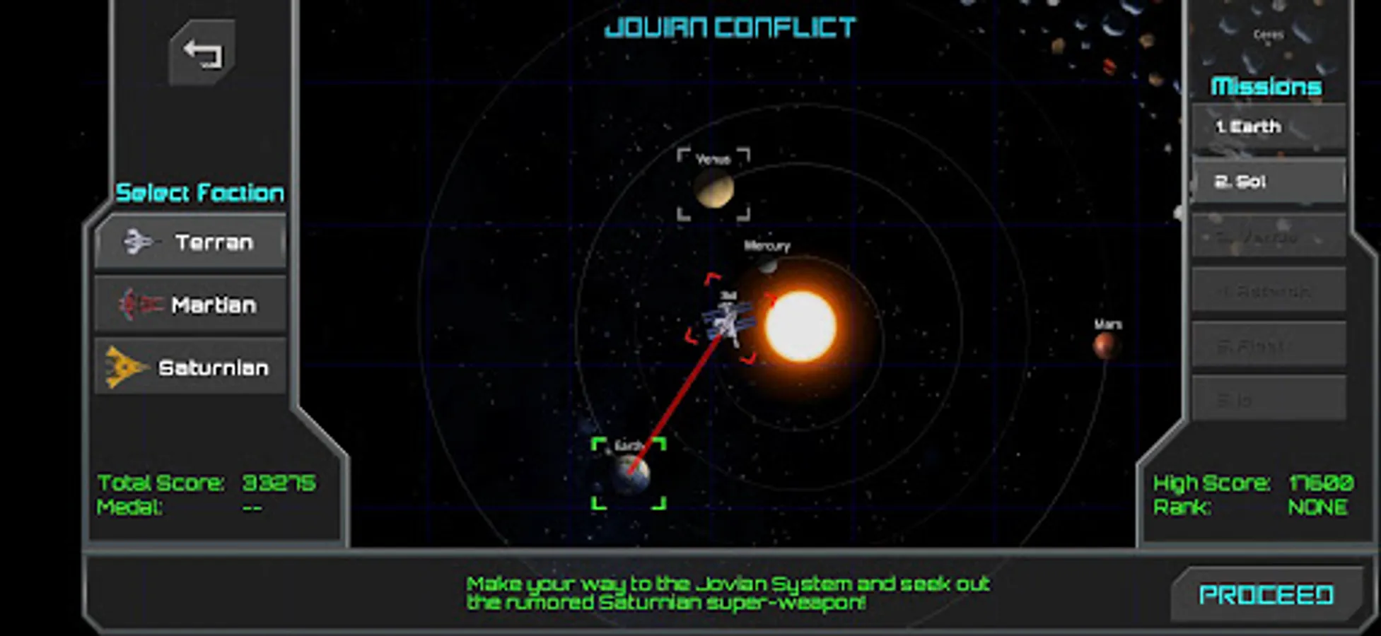 Conflict: Sol is a 2D space shooter that draws influence from both classic shooters (SHMUPs), and space combat games. It combines frantic, bullet-hell action with the bravado and banter of a daredevil fighter-wing. It is primarily a story driven, single-player experience that allows you to replay each campaign from different perspectives.