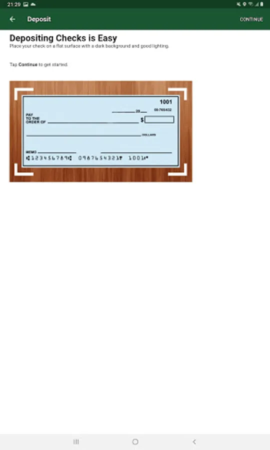 -Easily deposit checks anytime on the fly. (Bank requirements still apply on timing of deposit.)