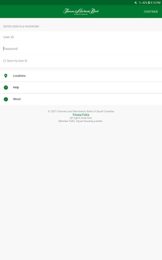 Start banking wherever you are with FMBSC_ToGo Mobile! Available to all Farmers and Merchants Bank of South Carolina online banking customers, FMBSC_ToGo Mobile allows you to check balances, make transfers, pay bills, pay a person, make deposits, access via Touch ID or Passcode and find locations. Need to find a Branch or ATM closest to you? With Find Near Me, FMBSC_ToGo Mobile for iPad will discover your location and provide you with addresses and phone numbers on the fly.