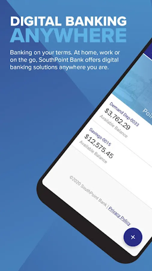 Banking on your terms. At home, work or on the go, SouthPoint Bank offers digital banking solutions anywhere you are. Use your mobile phone or device to manage your bank accounts. Simply log on to view your account balance, find the nearest branch, pay bills, deposit checks and much more. Once you enroll in online banking at www.southpoint.bank, download the app and login.