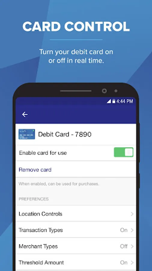 - Customize your cards by setting permissions for transactions by location or buying channel.