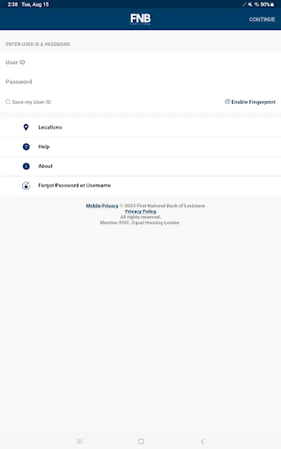 Start banking wherever you are with FNB of Louisiana Mobile! Available to all First National Bank of Louisiana mobile banking end users. FNB of Louisiana Mobile allows you to check balances, make transfers, pay bills, make deposits, and find locations.