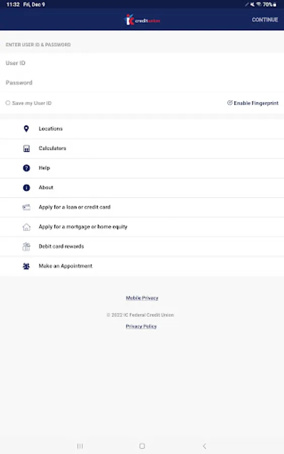Start banking wherever you are with the IC Credit Union Mobile App for Android! Available to all IC Credit Union online banking customers, the IC Credit Union Mobile App allows you to check balances, make transfers, pay bills, make deposits, and find locations.