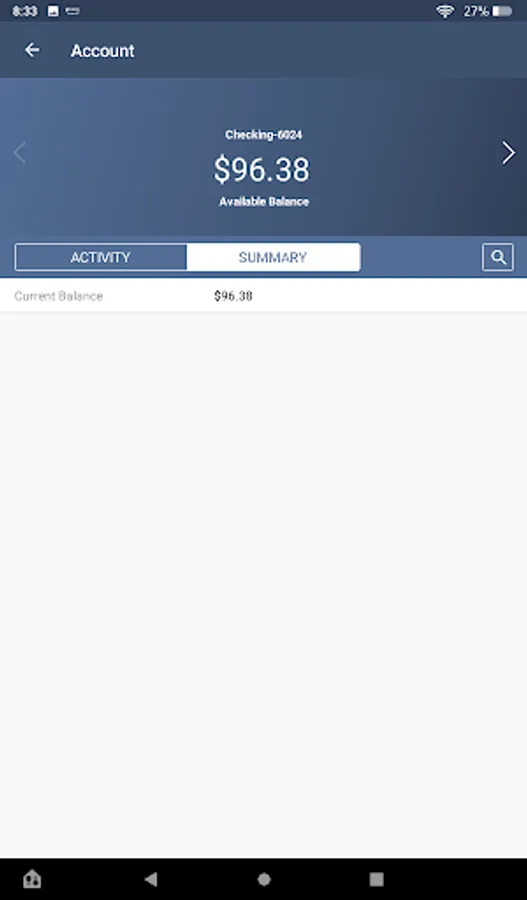 - Check your latest account balance and search recent transactions by date, amount, or check number.