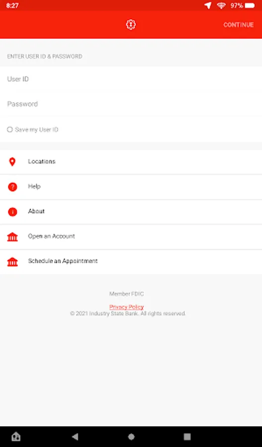 Start banking wherever you are with Industry State Bank for Android! Available to all Industry State Bank online banking customers. Industry State Bank for Android allows you to check balances, make transfers, and find locations. Need to find a Branch or ATM closest to you? With Locations, Industry State Bank for Android will discover your location and provide you with addresses and phone numbers on the fly.