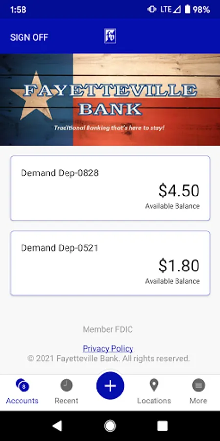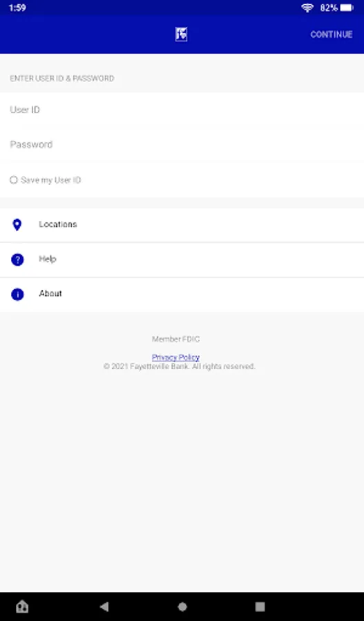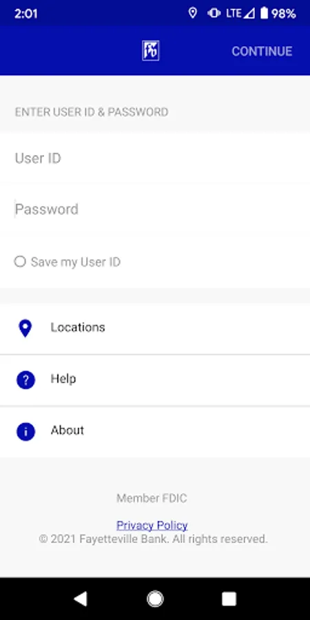 Start banking wherever you are with Fayetteville Bank for Android! Available to all Fayetteville Bank online banking customers. Fayetteville Bank for Android allows you to check balances, make transfers, and find locations. Need to find a Branch or ATM closest to you? With Locations, Fayetteville Bank for Android will discover your location and provide you with addresses and phone numbers on the fly.