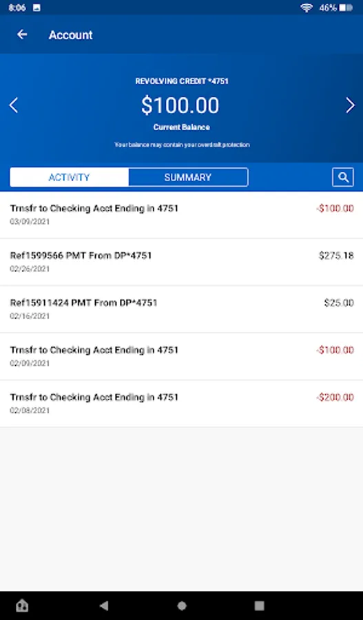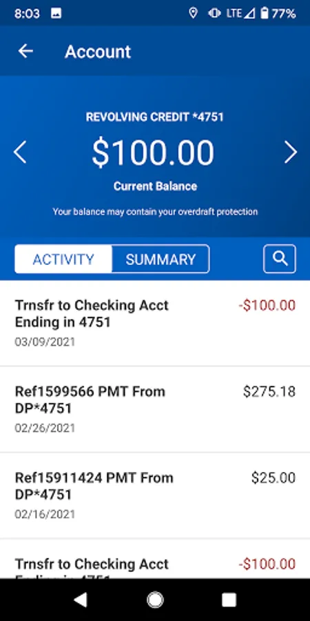 - Check your latest account balance and search recent transactions by date, amount, or check number.
