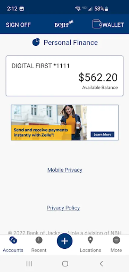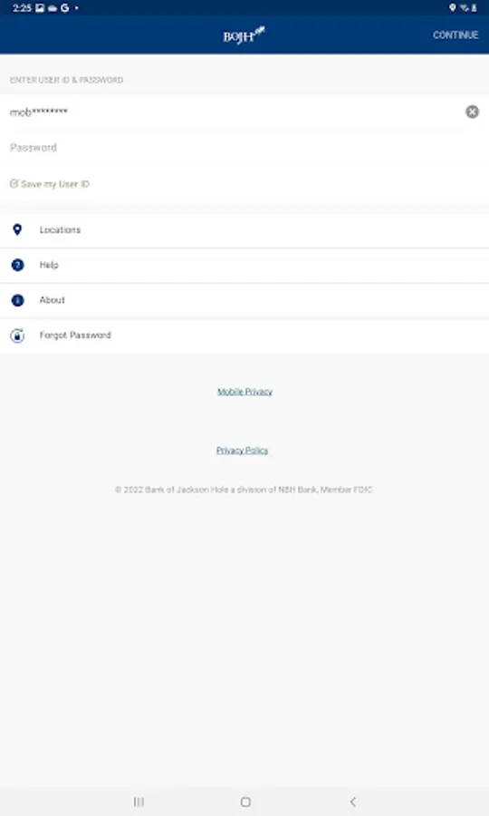 Available to all Bank of Jackson Hole consumer online banking customers. BOJH Mobile allows you to check balances, make transfers, pay bills, make deposits and find branch/ATM locations.