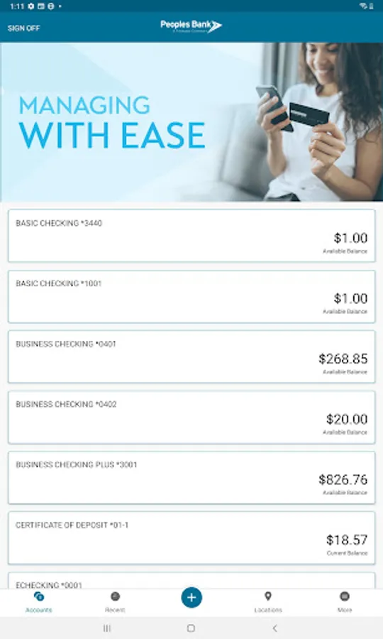 Peoples Bank Mobile allows you to check balances, make transfers, pay bills and find locations. Need to find a Branch or ATM close to you? Peoples Bank Mobile will allow you to search by zip code or address and provide you with addresses and phone numbers on the fly.