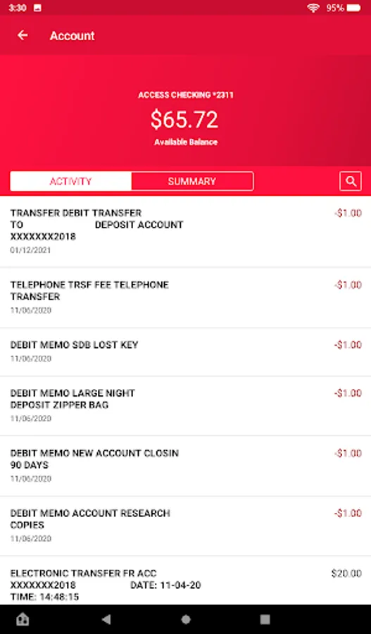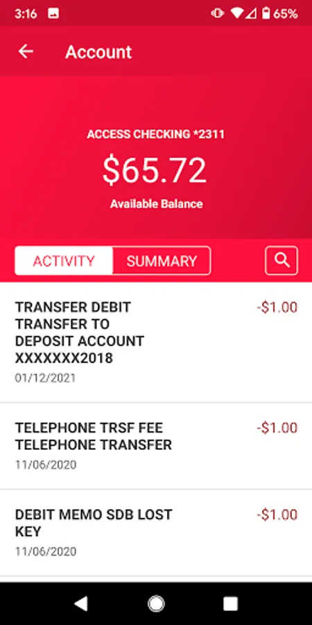 - Check your latest account balance and search recent transactions by date, amount, or check number.