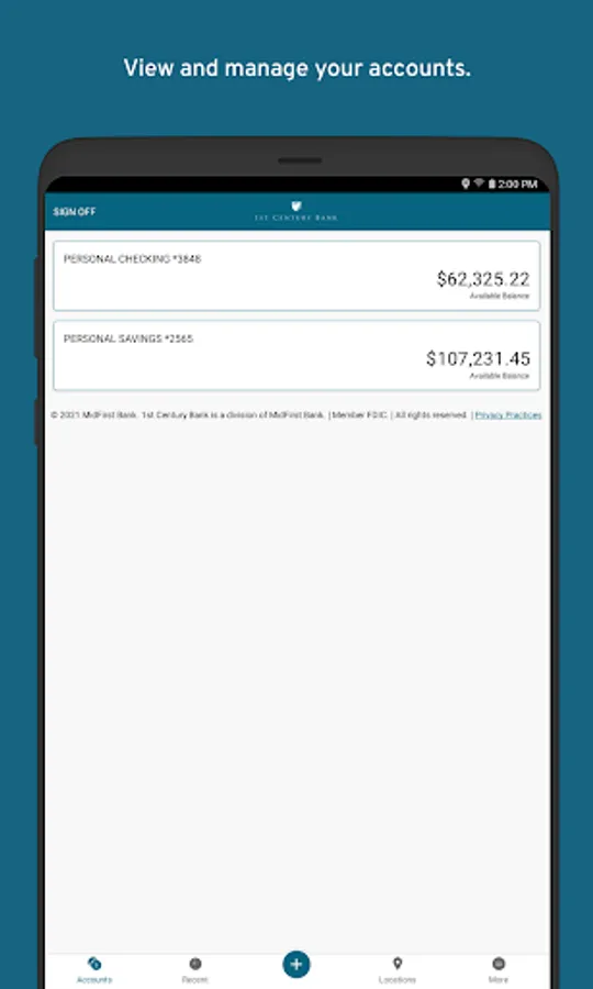 - Find nearby Branches and ATMs using the mobile device's built-in GPS or search by zip code or address.