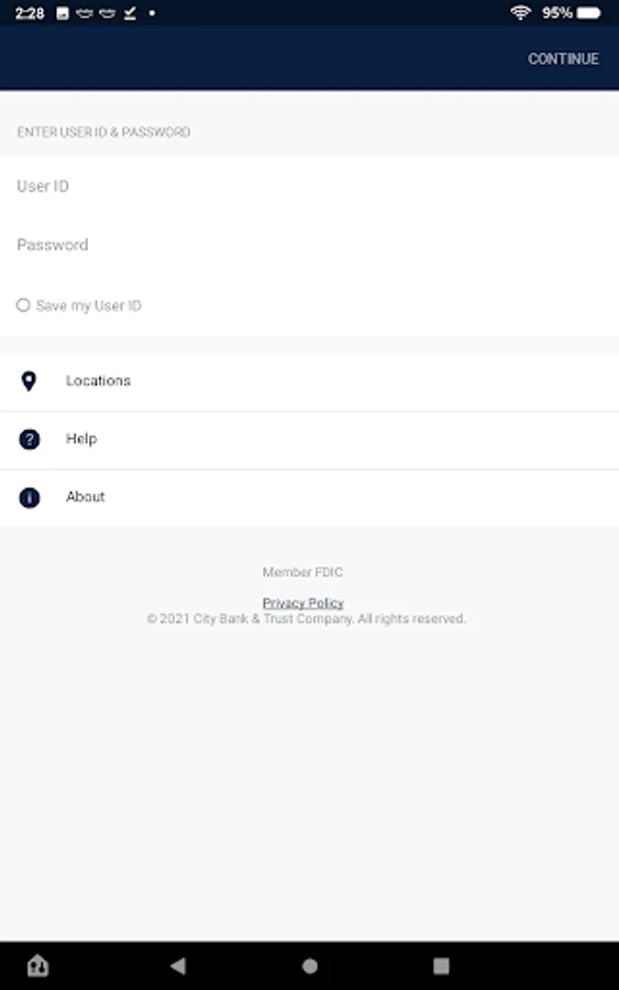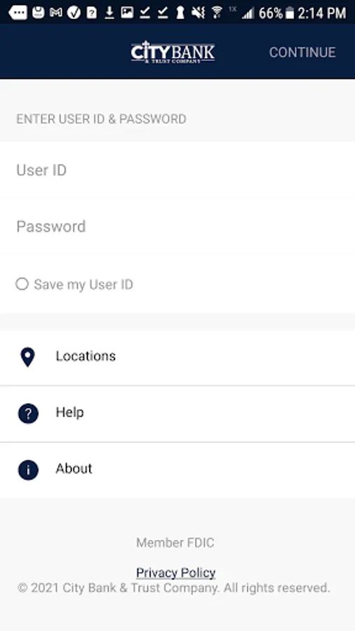 Start banking wherever you are with City Bank & Trust Mobile for your Android! Available to all City Bank & Trust online banking customers, City Bank & Trust Mobile allows you to check balances, make transfers, find locations, pay bills and control your debit card. Need to find a branch or ATM closest to you? City Bank & Trust Mobile will discover your location and provide you with addresses and phone numbers on the fly.