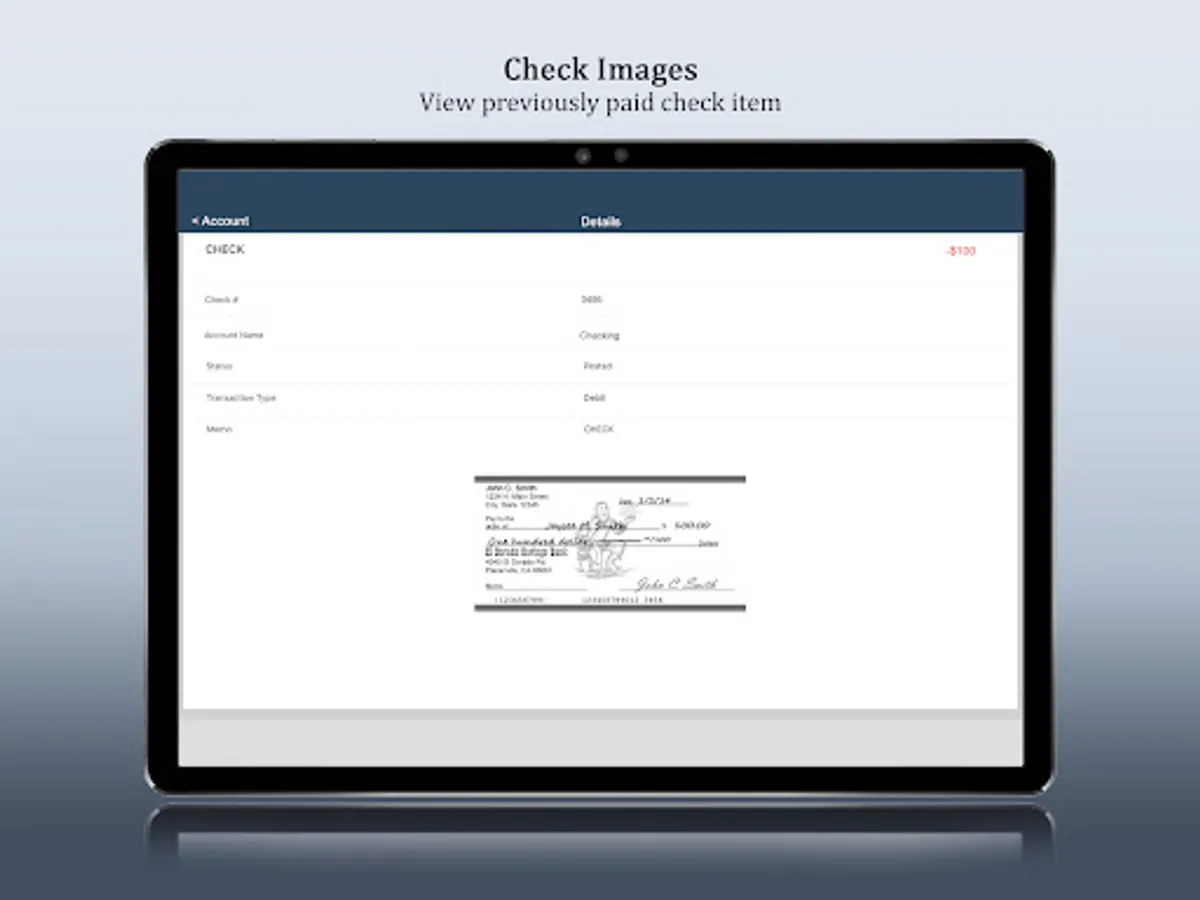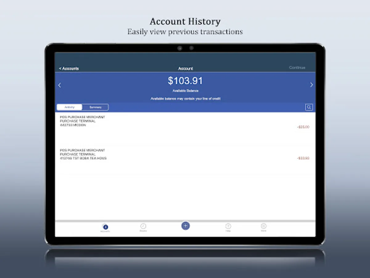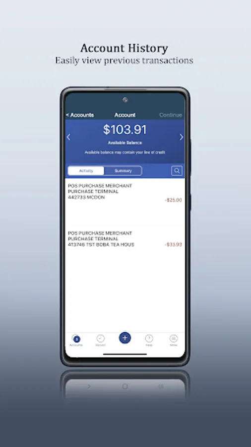 - Check your latest account balance and search recent transactions by date, amount, or check number.