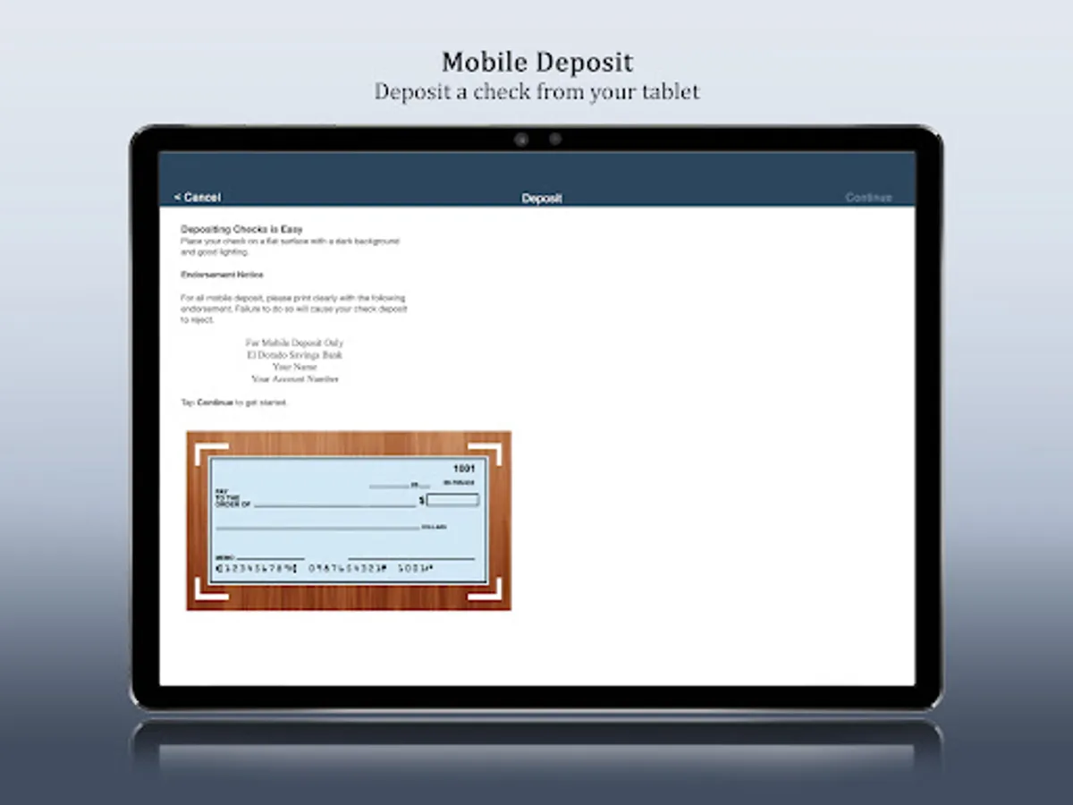 Start banking wherever you are with El Dorado Savings Bank Mobile for Droid! Available to all El Dorado Savings Bank online banking customers El Dorado Savings Bank Mobile allows you to check balances, make transfers, and pay bills.