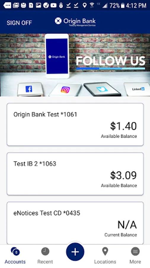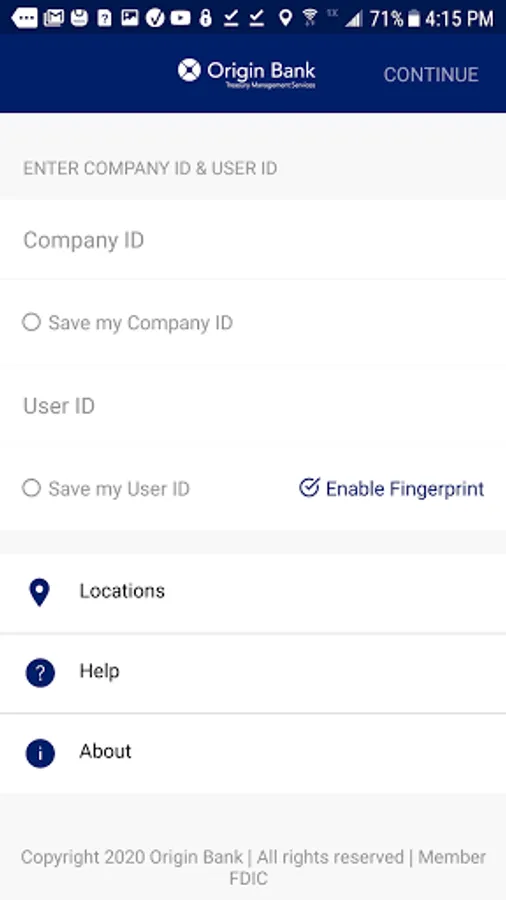 Start banking wherever you are with Origin Bank Treasury Management Mobile Banking for Android! Available to all Origin Bank Treasury Management online banking customers, Origin Bank TM Mobile Banking allows you to check balances, make transfers, pay bills, make deposits, send person to person payments and find our locations.