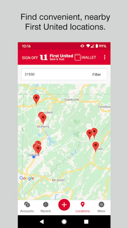 - Find nearby Branches and ATMs using the device’s built-in GPS. Additionally, you can search by zip code or address.