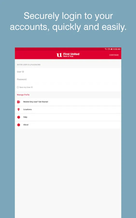 Start banking wherever you are with My Bank Business Mobile for mobile banking! Available to all First United Bank & Trust business online banking customers My Bank Business Mobile allows you to check balances, make transfers, pay bills and find locations.