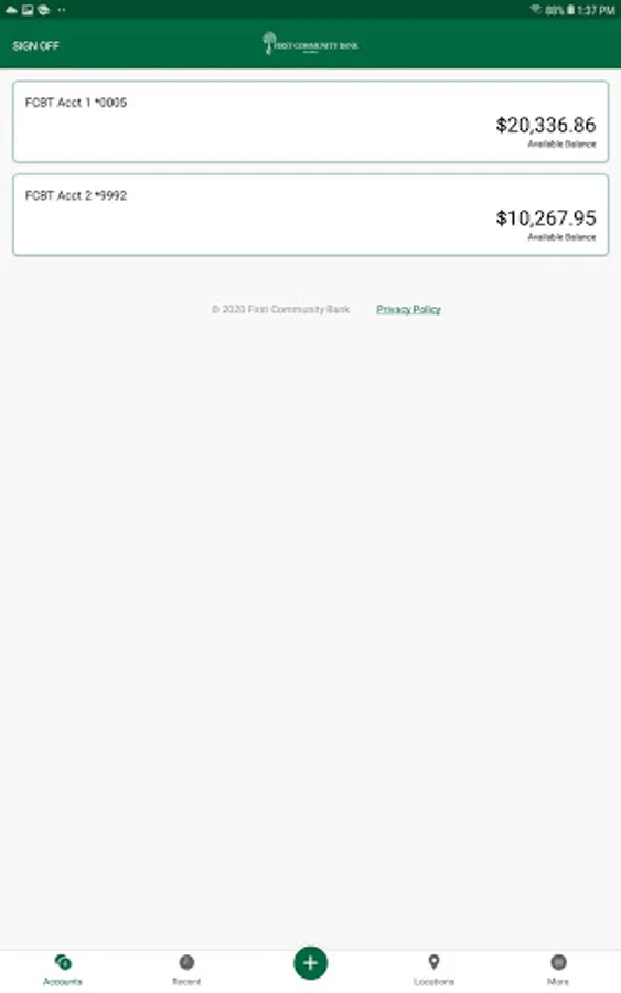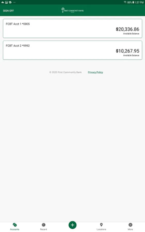 Find nearby Branches and ATMs using the device’s built-in GPS. Additionally, you can search by zip code or address.