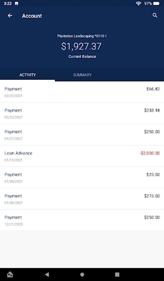 - Check your latest account balance and search recent transactions by date, amount, or check number.