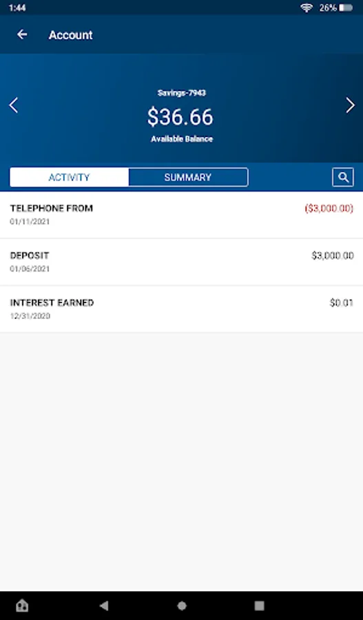 - Check your latest account balance and search recent transactions by date, amount, or check number.