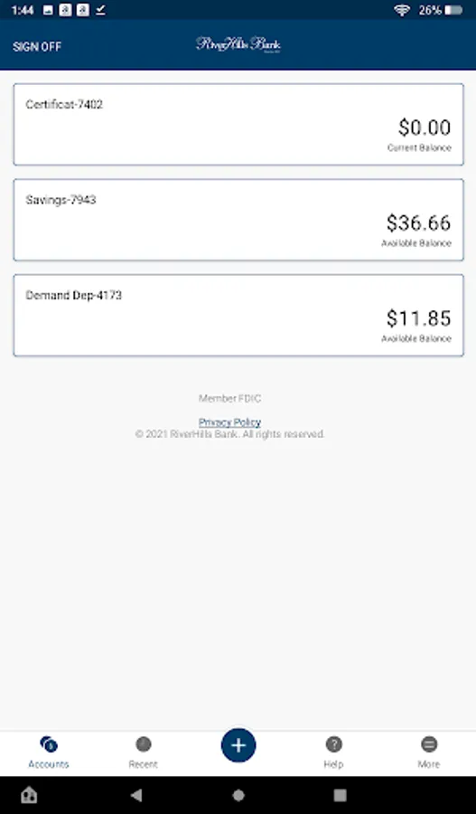 - Easily make transfers between your RiverHills Bank accounts.