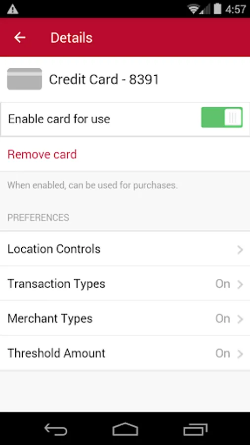 Allows a cardholder to set preferences to receive push notifications when card is used.