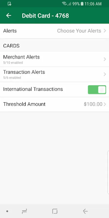 Allows a cardholder to set preferences to receive push notifications when card is used.