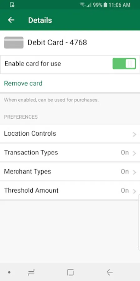 Allows a cardholder to control the how / where / when their payment cards are used via their mobile device.