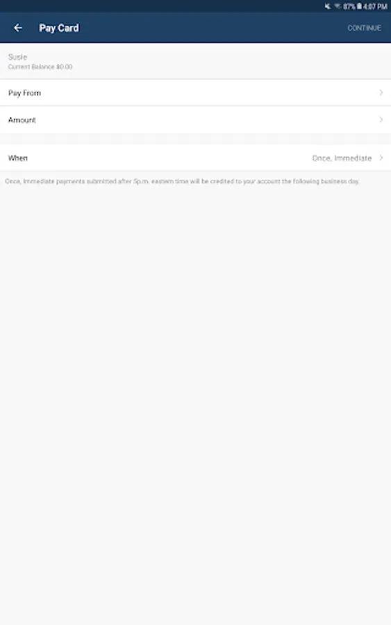 Check balances including current balance, statement balance, last payment amount, minimum payment due, and payment due date