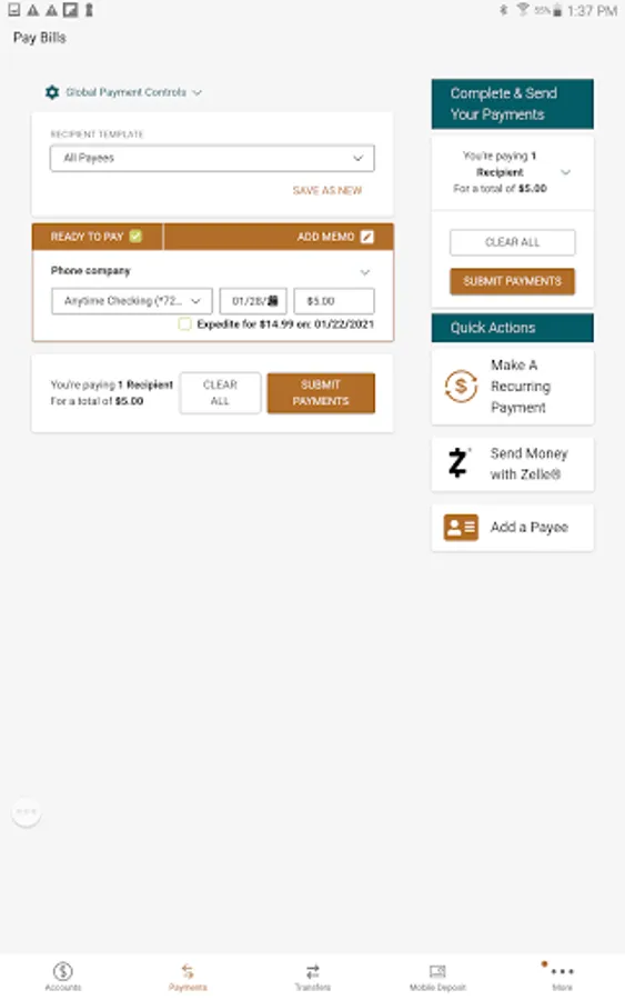 • Send, request, and receive money with Zelle®2 to people you know and trust (Personal)