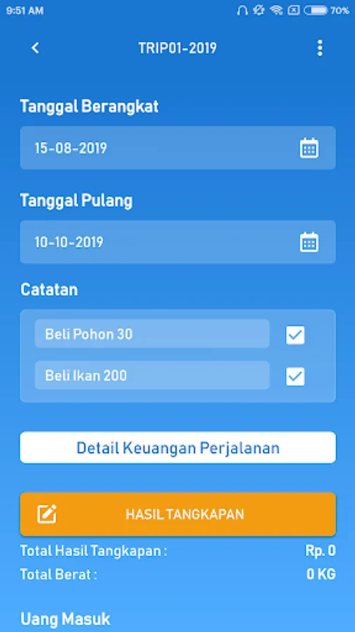 - Data detail trip kapal berupa hasil tangkapan, pendapatan, pengeluaran.