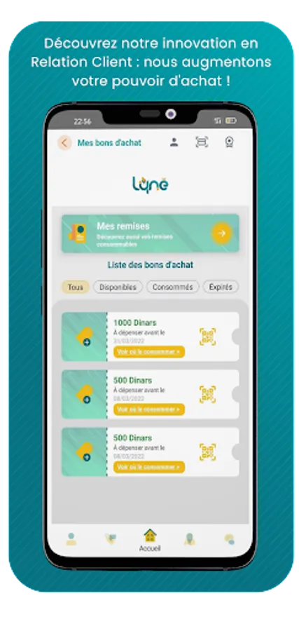 The Lyne application makes your daily purchases a very profitable investment! Find our partner shops and businesses via Lyne, which will offer you the possibility of benefiting from several exclusive purchase vouchers and discount vouchers via membership in our Algiers Pass program.